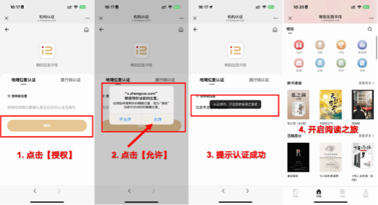 点击【授权】,点击【允许】使用你当前的位置,认证成功后即可开启免费在线阅读