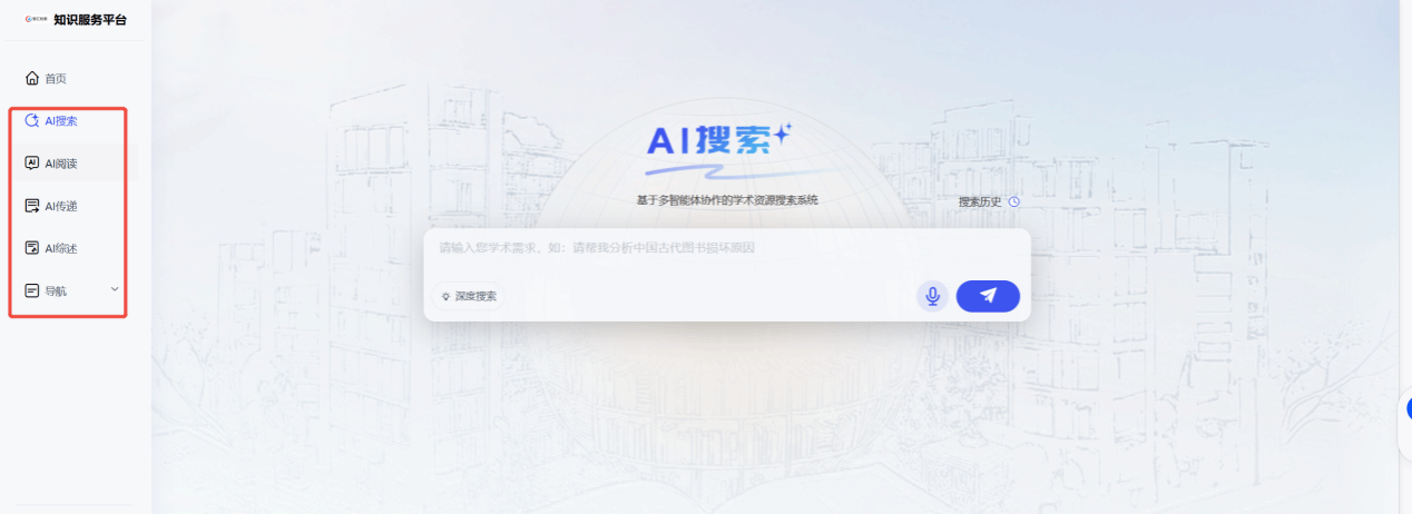 平台支持AI搜索、AI阅读、AI传递、AI综述等功能。