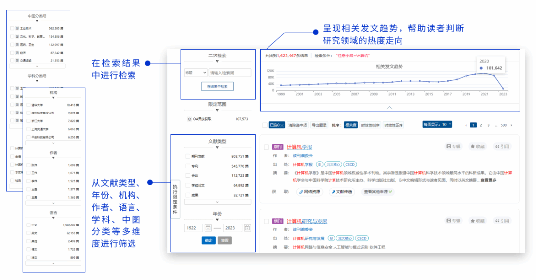 3.二次检索是在检索结果中进行检索,以更精准地定位到所需文献。